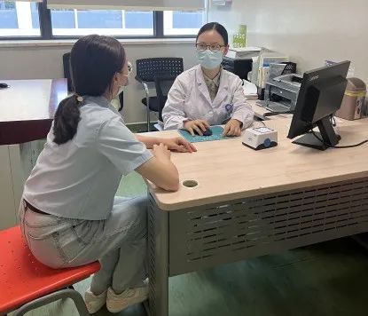 吳玲玲醫生(右)在門診中/浙大兒院供圖