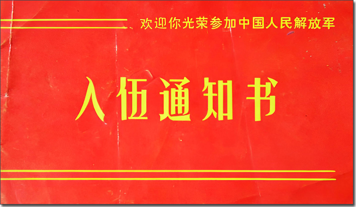 快10:00了,大隊的高音大喇叭喊我拿《入伍通知書》,是媽媽先聽到的,我一聽眼淚就出來了。