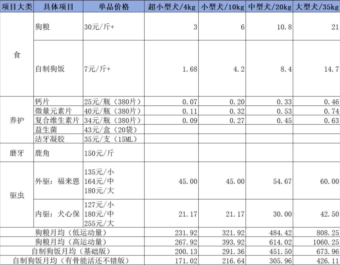 如果選的狗糧再好一些,這個價格還得往上漲。