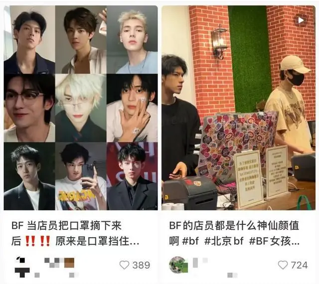 隨便戳進幾個打着#重慶bf#、#上海bf#話題的視頻、帖子,基本上都少不了帥哥店員的身影。