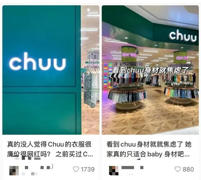 韓國多巴胺高能量風品牌chuu的中國門店在2023年達到156家,比上一年5月時的73家翻了倍。
