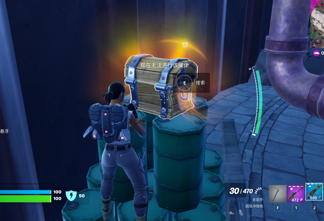 我們講吃雞遊戲的核心三要素,一般就是“搜刮”、“跑圖”和“戰鬥”。而《堡壘之夜》在前兩者上可以做説做了最極端的簡化:搜刮幾乎全部由完全裸露的物資和寶箱構成(擊敗敵人也是“爆金幣”,不用搜揹包),主界面的6格裝備欄是唯一值得關注的點;跑圖縮圈慢、壓迫感低,角色位移性能強,受地圖的地形限制極低……