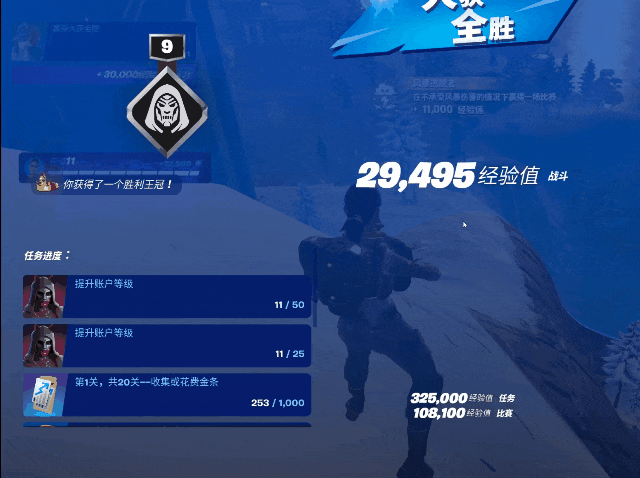 而這些任務,除了局內的特殊收益(代幣、道具、武器等),還會隨時隨地給玩家一個即時的長線養成反饋(等級經驗、通行證成長)。在終局結算之後,這些完成過的“小目標”還會挨個在計分板上用大字體打出來。