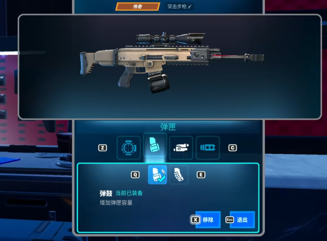 在實際遊玩當中,我的注意力全程只需要放在角色和畫面本身,戰鬥外的冗雜信息實際上都被刻意過濾了:這在極大程度上降低了玩家在遊戲中的認知負擔。舉個例子,在其他吃雞遊戲中,打開揹包來回切換槍械配件(尤其倍鏡)是一件常事,但《堡壘之夜》里人人撿到的武器都是隨機配件(也無法隨時更改),只有在地圖特定位置才能花費代幣資源自定義配件。這種把“戰鬥”和“配槍”硬性區隔開來的做法,進一步壓縮了玩家的注意力範圍。