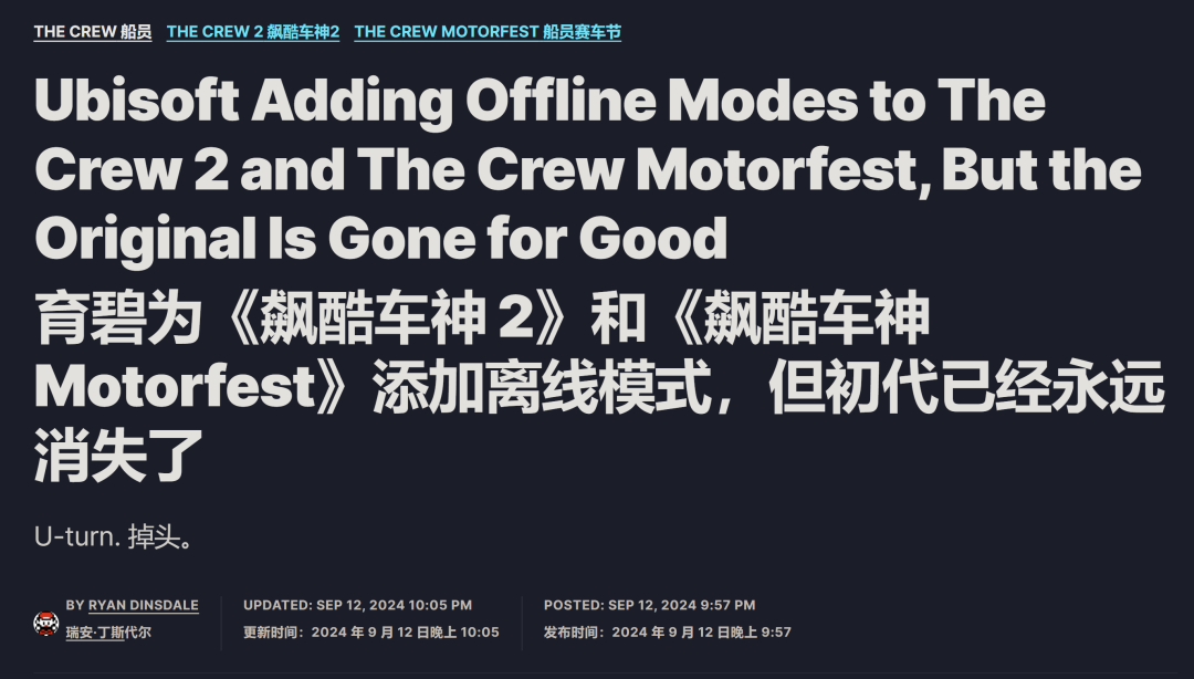 這個月育碧在《飆酷車神2》里加了個離線模式