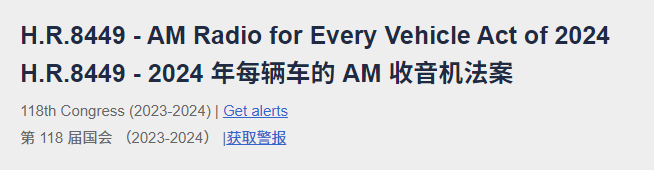 美國眾議院的能源與商務委員會通過了《 AM Radio for Every Vehicle Act of 2024 》( 2024 車載調幅廣播法案),這個法案要求車子必須能接收 AM 廣播電台信號,並且不能額外收費。