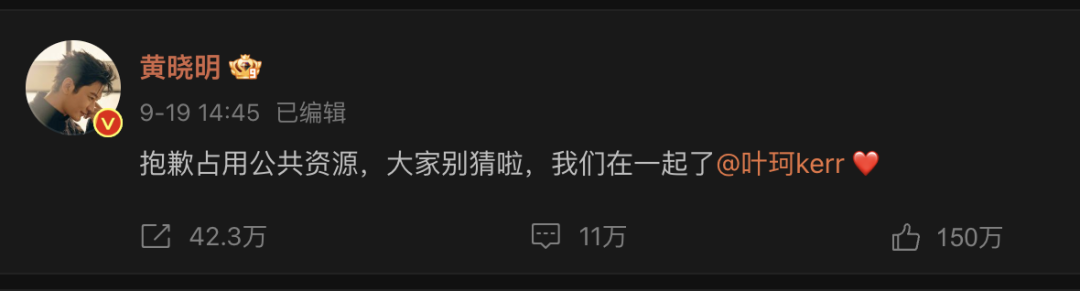 但在2024年的今天,黃教主再次站在輿論的風口浪尖,公開戀情時不再有往日的氣宇軒昂,只有寥寥的一行字:大家別猜啦,我們在一起了。