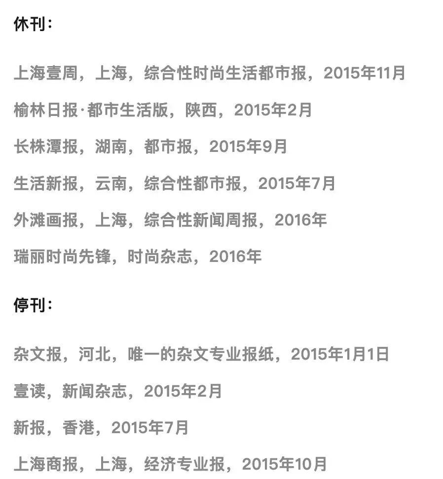 有人總結説,2015年是傳統媒體“驚心動魄”的一年,許多雜誌報刊都宣佈停刊、休刊、轉型,只求不要變成時代車輪碾過的炮灰。