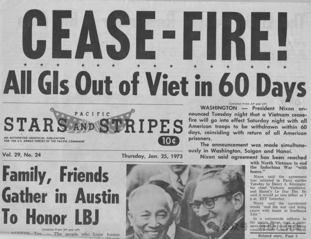 當年10月26日,時任總統尼克松突然宣佈“我們相信和平即將來臨”,暗示美國即將從越南撤軍。此消息立即引發美國民眾的廣泛關注,並大大緩解了民眾因長時間捲入越戰而產生的厭戰情緒。