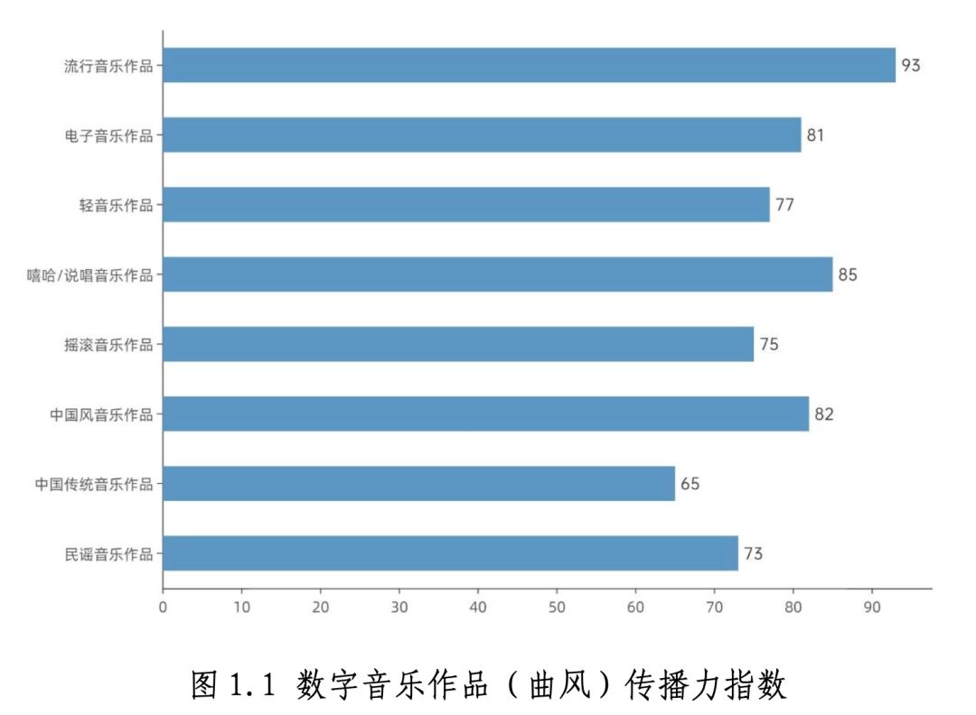 數字音樂文化傳播力主要從流行音樂文化、電子音樂文化、輕音樂文化、説唱音樂文化、搖滾音樂文化、國風音樂文化、中國傳統音樂文化及民謠音樂文化等八類曲風文化維度的傳播力指數評測來反映。