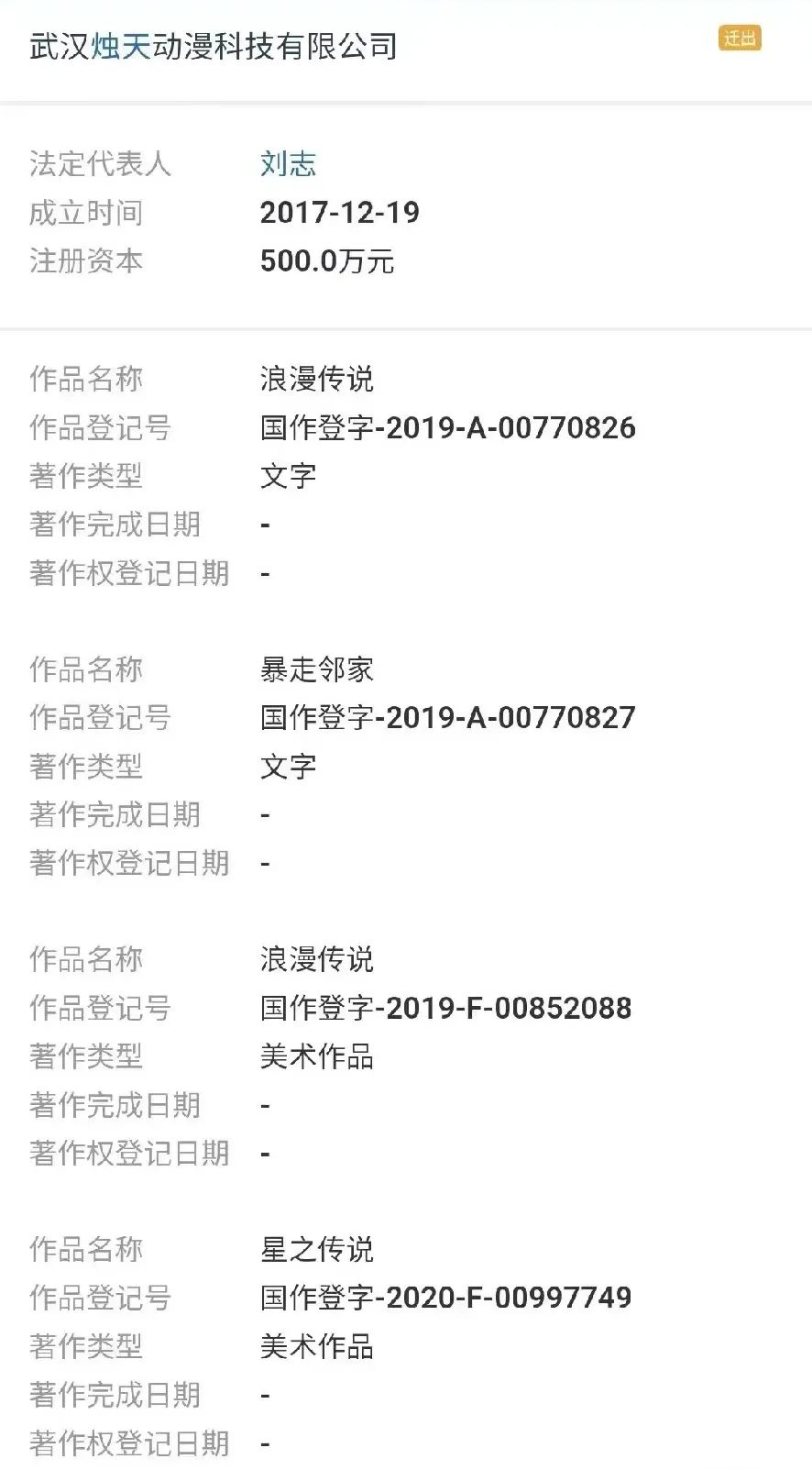 據天眼查信息顯示,劉志目前為“海南燭天動漫科技有限公司(原身為A-soul漫畫工作室)”法人、持股100%,同時也在長沙天使文化股份有限公司、海南重樓文化有限公司等6家公司參股及擔任職位。從從業人員、早年報道中,可以拼湊出來的是,這位神秘的“哥”原為圖書出版行業人士,與唐家三少(張威)同為天使文化股東,而唐家三少的《斗羅大陸》漫畫版便是由A-soul進行繪製,可見兩人的淵源頗深。