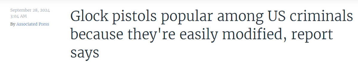 據美聯社報道,研究人員發現,有四家槍支製造商所生產的槍支佔到了所繳獲槍支的40%以上,僅格洛克一家就佔了18%。“為每個城鎮帶來槍支安全”組織主席約翰·費恩布拉特(John Feinblatt)批評説:“他們從根本上説就是從痛苦中獲利,他們將利潤置於安全之上。”