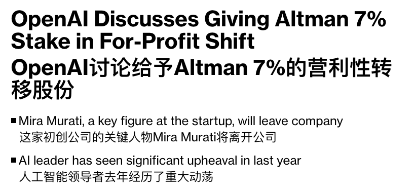 Bloomberg , OpenAI 討論給予 Altman 7% 的營利性轉移股份