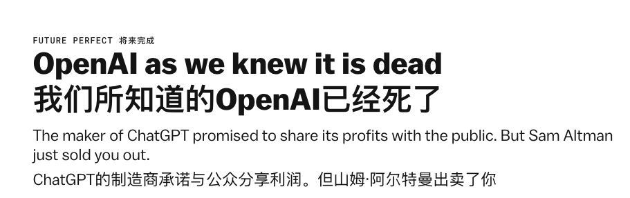 外媒對 OpenAI 的評價,也是一家比一家犀利,什麼 OpenAI 已經死了、 OpenAI 正在被撕裂的詞兒都用上了。