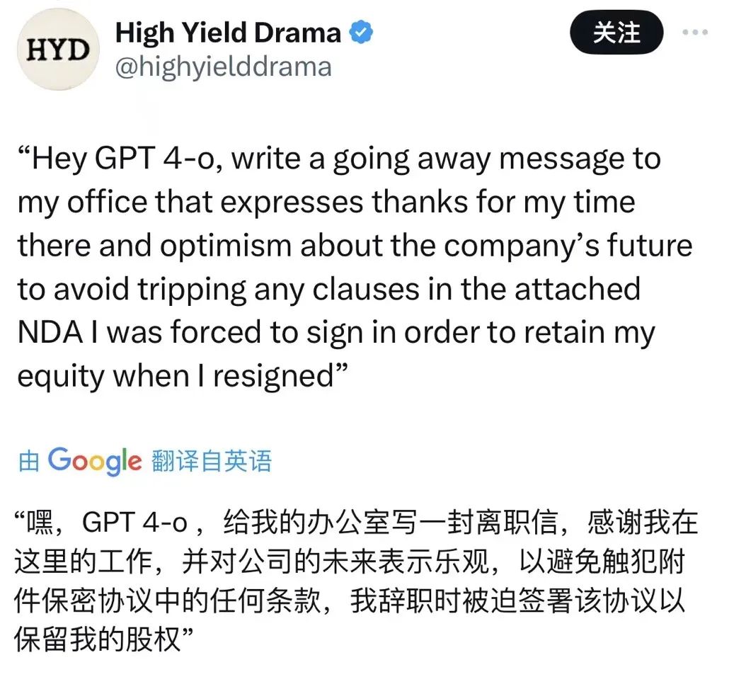 還有人直接用之前的 “ 封口協議 ” ,陰陽了 OpenAI 一波。