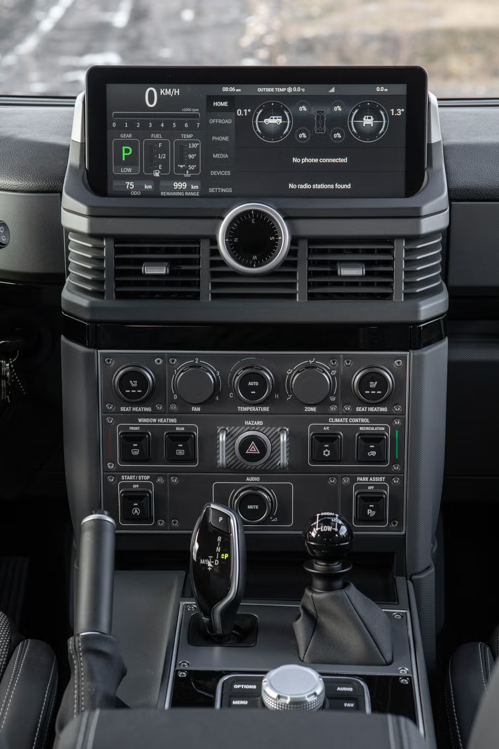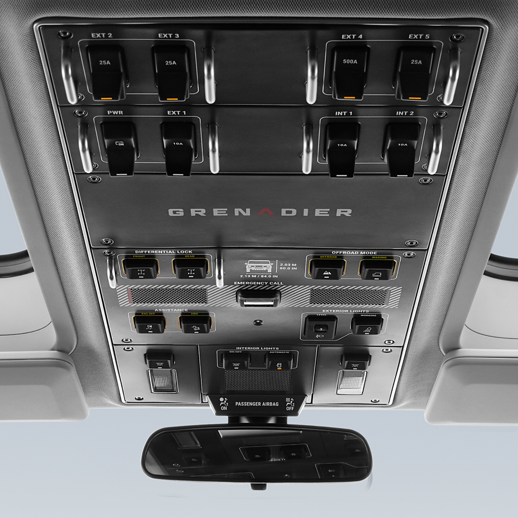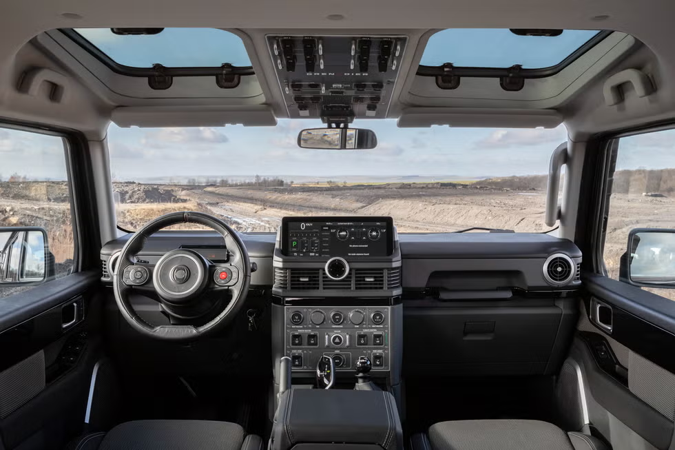 為了越野的可靠性與耐磨,擲彈兵的內飾基本都用的硬塑料,但是這個如同金屬一般的質感,加上飛機一樣的座艙佈局,兩個純手動天窗,越野玩家看了要走不動道了。