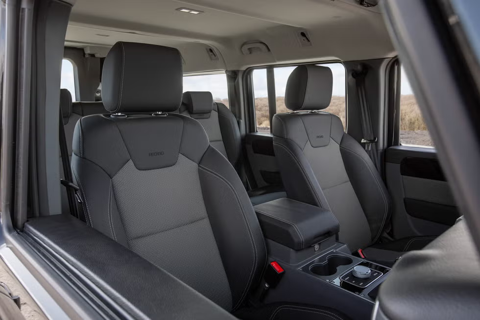 但不管怎麼説,整個內飾基本上可以説在最素的顏色下營造出了豪華感,麥格納作為奔馳的代工廠兼供應商,給擲彈兵直接帶來了一股 “奔馳味”,而且這麼一台越野車,座椅都是跟 RECARO 定製的,這些用料算是對得起這 80 多萬的售價了。