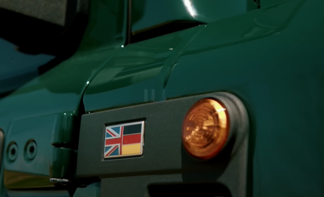 車頭也是方盒子的經典圓燈,名字 Grenadier 放到了機蓋的左側,雨刮的底部有着版本名,車身左側則是英國跟德國的旗幟,彰顯它在英國外觀下有着德國的工藝。