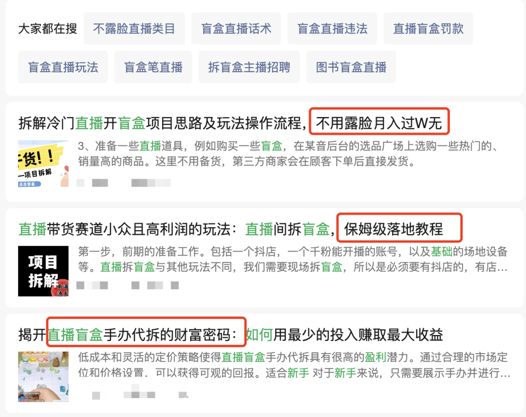 於是一條集主播話術培訓、供應鏈對接、運營策略指導於一體的培訓產業鏈應運而生。社交媒體上出現一些以“盲盒直播如何快速入門賺錢”為噱頭的課程。價格從幾十元到幾千元不等,有人靠賣課能月入3萬。