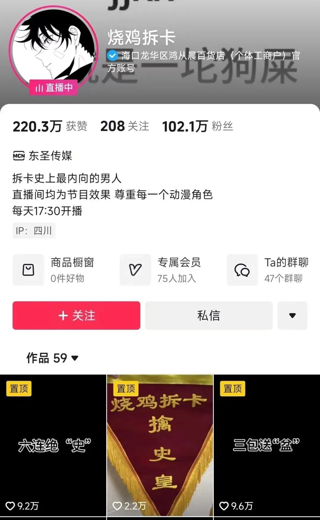 拆盲盒直播的頭部“燒雞拆卡”就將用户反覆中獎,二創成切片短視頻進行二次傳播,每條都有上萬點贊。