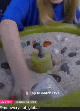 最早的盲盒直播是風靡境外直播間的“水晶晃桶”玩法,又稱“Lucky Scoop”,每次開始“鏟播”時,主播都會將各種小東西拋進“水晶池”,隨後採用淘金手法來挖“寶”。