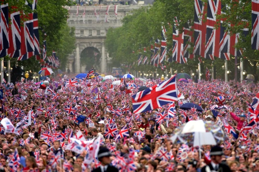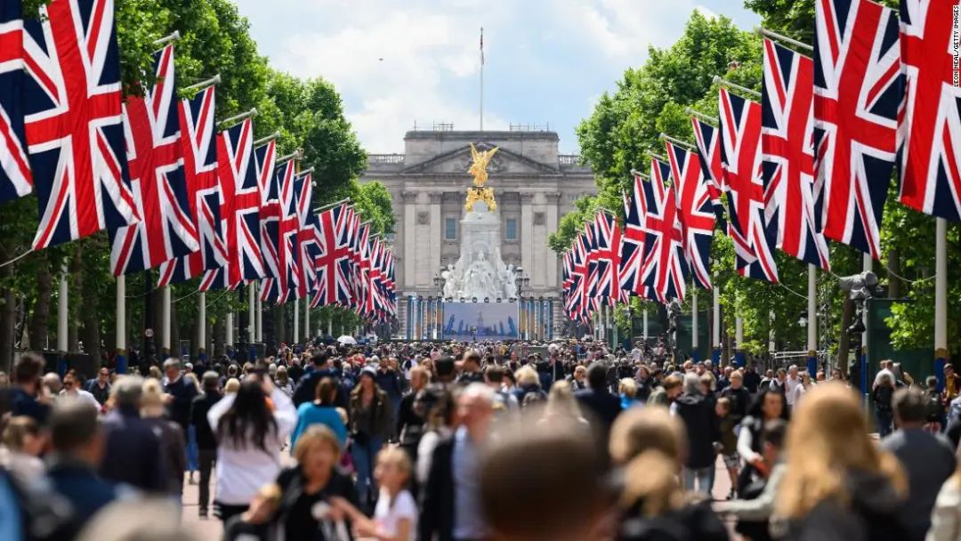 米字旗掛滿英國大街小巷,大量民眾早早地就在白金漢宮前等候,準備一睹閲兵盛況,慶祝活動持續一週,官方發售的慶典商品卻早已賣斷了貨。