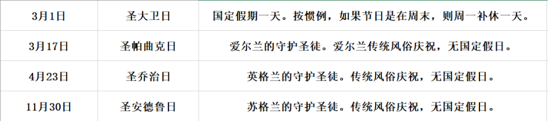 為了安撫想要獨立的愛爾蘭人,英國政府在1903年將愛爾蘭的“聖帕特里克節”確立為銀行假日(僅限愛爾蘭島),當然,這並沒阻止愛爾蘭南部26郡在1922年獲得獨立,北部的6郡留在英國,成立北愛爾蘭。