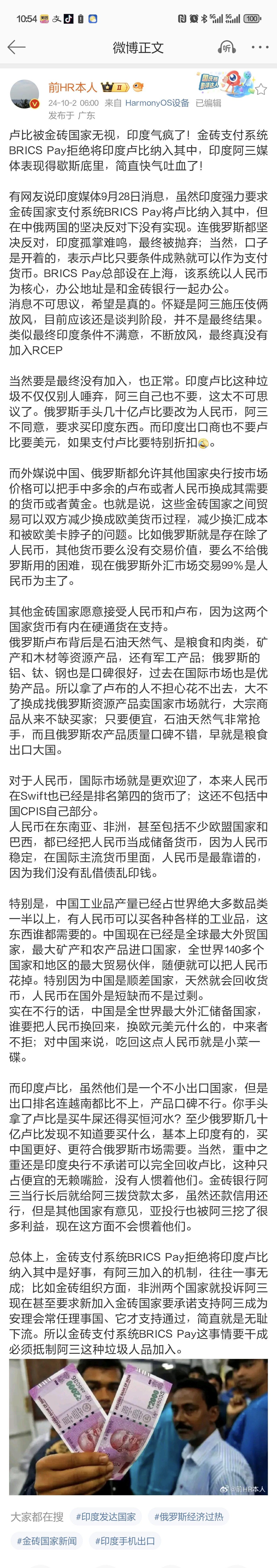 盧比被金磚國家無視,印度氣瘋了!金磚支付系統BRICS Pay拒絕將印度盧比納入其中,印度阿三媒體表現得歇斯底里,簡直快氣吐血了!