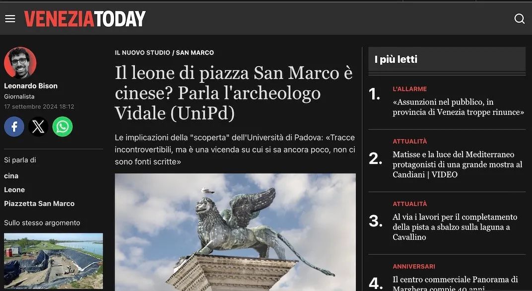 一轉眼,三十多年過去,科學技術有了大幅度進步,這些年,威尼斯的考古學家們也給飛獅做了多次詳細的溯源檢測。