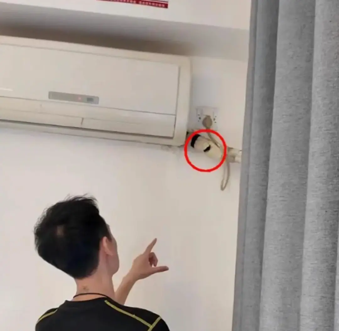 博主“影子不會説謊”查看安裝在空調管道處的攝像頭(視頻截圖)。