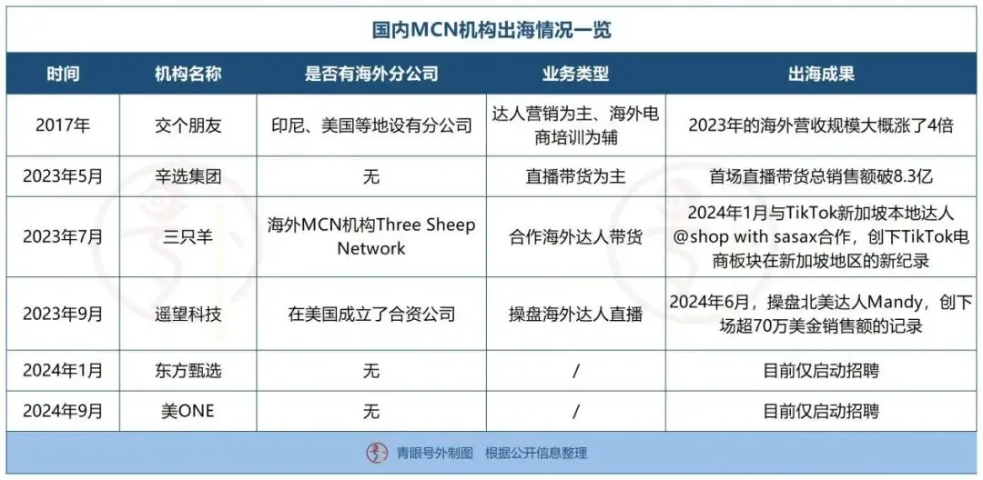 但與此同時,美ONE出海也面臨更多的挑戰,尤其是在國內頭部MCN並沒有真正打開或者説有效孵化海外直播市場的大背景下。