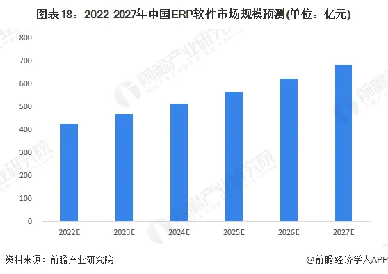 據前瞻研究院等發表的預測數據顯示,2022-2025年ERP市場的複合增速只有7%,2025年時ERP市場的規模只有505億元。由此可見,千億不到的市場規模,已經沒有太大想象空間。