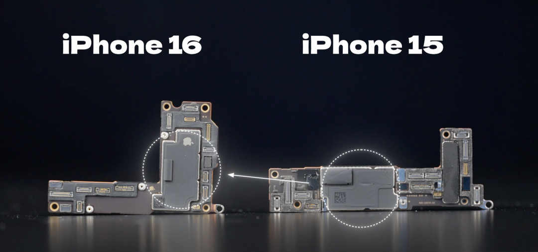 其中 16 很明顯的一個改動就是,主板改成了 “L” 型,芯片也從之前的右側改成了居中放置,並且芯片周圍的結構也針對散熱去進行了優化。