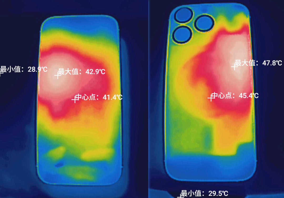 而從另一個方面來看,我們也不得不承認,這種慫的調度並不是完全沒有好處,那就是 16 Pro 的背面温度只有 47.8 ℃,正面也才 42.9 ℃,算是我們測下來的 4 台機型中,温度表現最好的那一台。