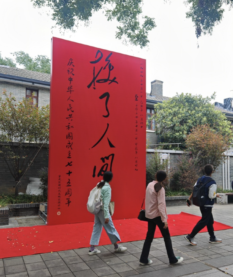 國慶期間,南京梅園新村路口,樹立了一面紅色的打卡牆,上書“換了人間”。字是教員的字,詞是教員的詞,如椽巨筆,氣勢磅礴。很多人停下來觀看、思考、詢問……感謝我們南京小紅梅同志們的努力,這四個字,體現了真正的愛國主義。