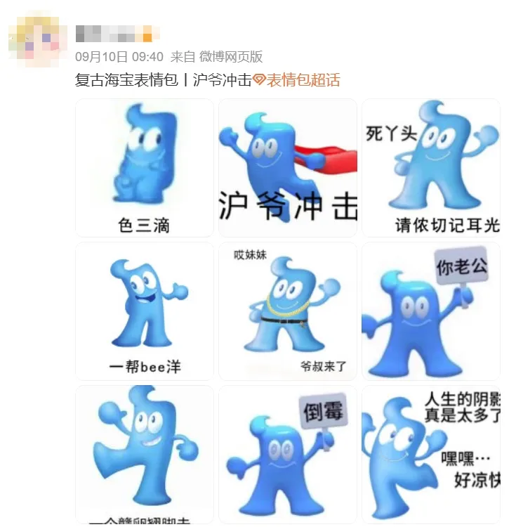 更萬萬沒想到的是,這一發“滬爺衝擊”竟然和2010年上海世博會的吉祥物海寶產生了化學反應。B站UP主“初霽chuki”在將一系列上海話和海寶形象搭配推出配音版表情包後,讓“滬爺”在各大地域文化圈子中的風頭一時無兩。