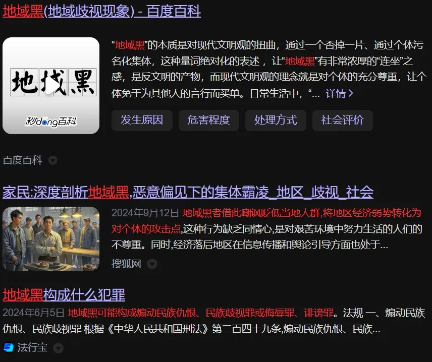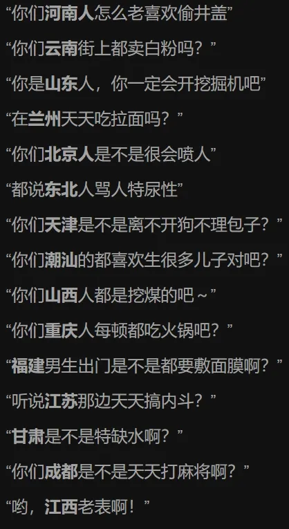 如果大家現在去翻看一些媒體或自媒體的敍述,會發現對“地域黑”這個東西的討論,大多還是會集中在這是一種“壞文明”的論調上。這種論調認為“地域黑”是不恰當的冒犯,是對特定羣體的攻擊,是互聯網黨同伐異爭論不休的象徵之一等等。