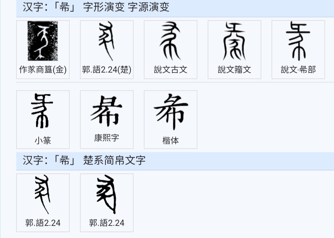 【求(禾穗倒伏折斷形)、殺殺、希、蔡(金文字形訛變為大人足部指事:流放並禁足)、㣇、彖、耑(足踩草根形)湍(露水汗水乃至血)】互為異體分化字。