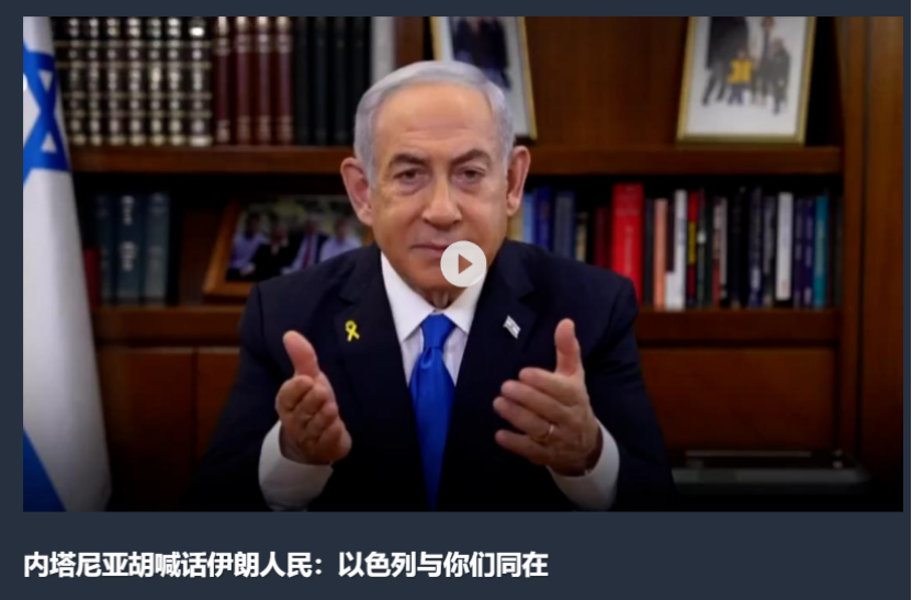 但是就在前幾天,內塔尼亞胡對伊朗民眾發表了一個電視講話,他號召“伊朗人民反對他們的暴君政權,他説這個政權正在使高貴的波斯人民更接近深淵”,而且,“希望伊朗人民知道以色列與他們同在,願雙方共同擁有一個繁榮與和平的未來。”
