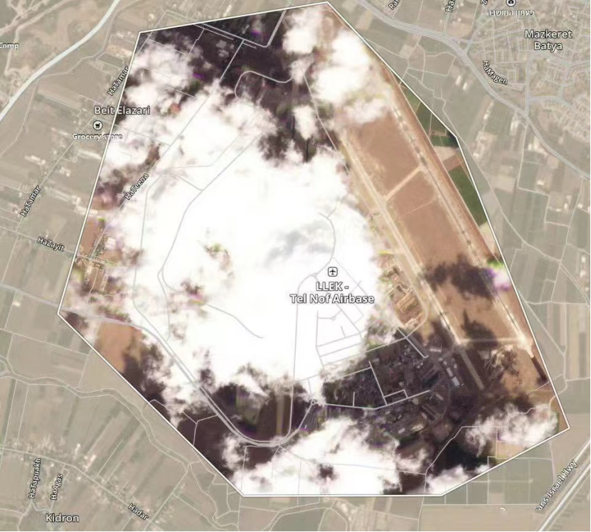 ▲以色列晴空萬里,但衞星圖上機場上方卻出現了詭異的“雲層”