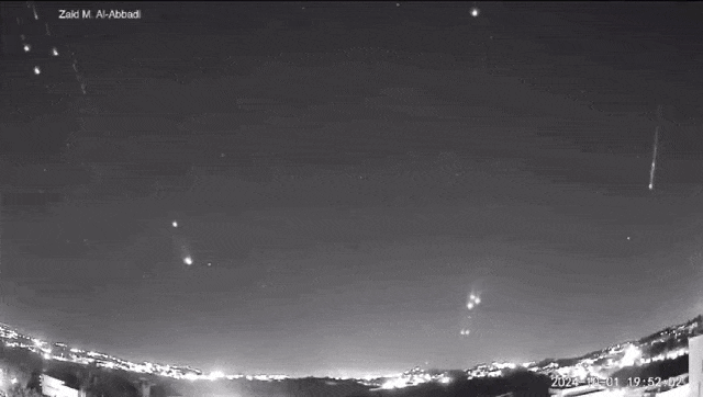 不過,隨着更多的伊朗導彈進攻細節放出,外界對以色列實施的反導攔截作戰也有了更為全面和客觀的認識,尤其是一位約旦攝影師原本想拍攝一些星空的延時照片,沒想到卻在約旦首都安曼拍攝到了以色列反導攔截系統對伊朗導彈實施攔截、伊朗導彈劃破長空突防飛向以色列的場景。大伊萬認為這組視頻極其珍貴,幾乎可以判明以色列在一個戰術方向上到底打了多少攔截彈。