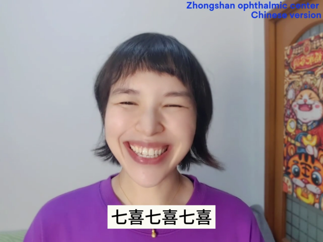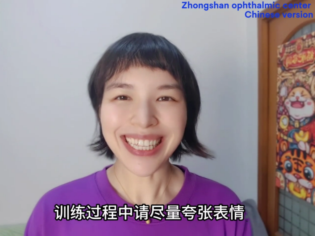 研究第一作者、中山大學中山眼科中心團隊李晶醫生為“大笑練習”拍攝的居家訓練視頻。圖源/受訪者提供