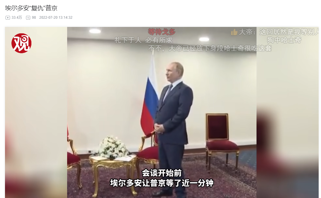 2022年俄烏戰爭爆發以後,輪到普京有求於土耳其,於是埃蘇丹小小報復了一下。