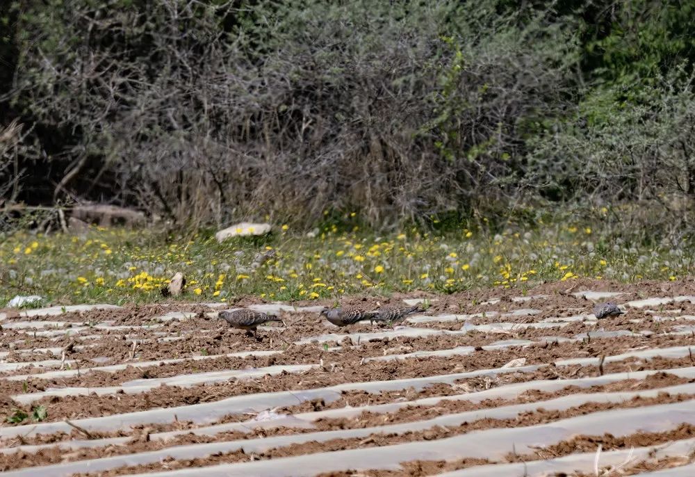 播種後,山斑鳩來到豹鄉田裏享用自助餐。