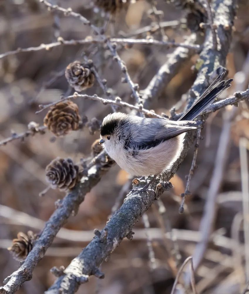 銀喉長尾山雀有着可愛的豆豆眼和豆豆嘴。“網紅”北長尾山雀曾經和它屬於同種,後來單分出去成為一種。