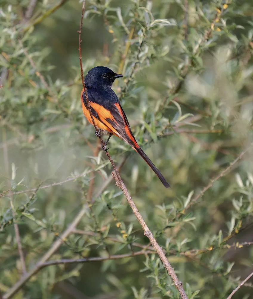 長尾山椒鳥,雄鳥後半身是非常醒目的紅色,在5月它們成羣出現在豹鄉田。
