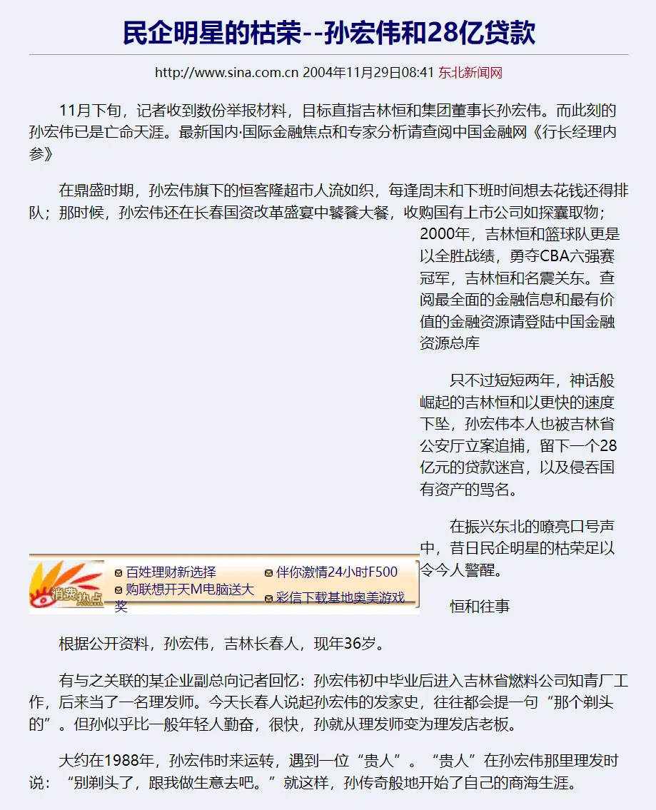 這位孫老闆可大有來頭,初中畢業幹美容美髮起家,遇到“貴人”提攜創辦恆和集團。90年代末,先後入主長春燈泡廠、拖拉廠等國企,瘋狂套取國有資產。