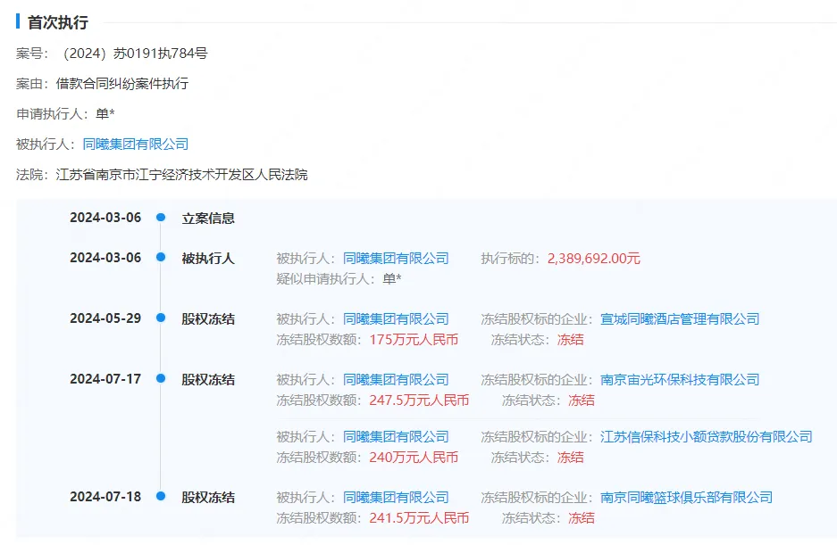 可是,同曦集團似乎快頂不住了。陳廣川、萬榮芳、陳曦三人目前都是失信被執行人,被限制高消費,甚至同曦俱樂部的股權也被捲入民間借貸糾紛被江寧法院凍結。