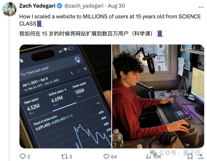 小夥兒Zach Yadegari(下面暫稱小扎克)在X上炫戰績,引來大量網友圍觀。