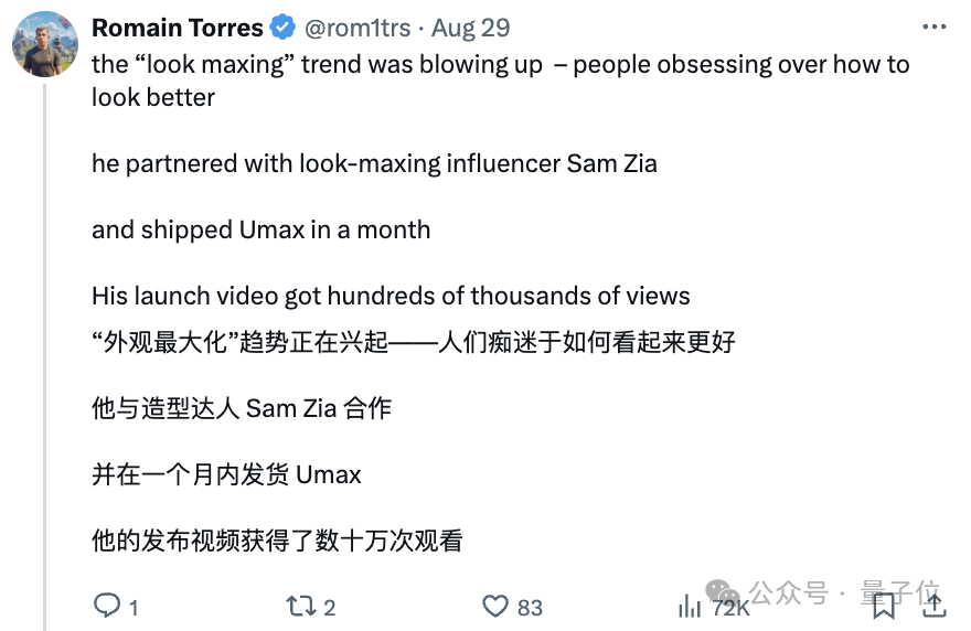 他還打造了Umax,這是一個外觀優化APP,他與造型達人Sam Zia合作,Umax一上線發佈視頻就得到了數十萬觀看。